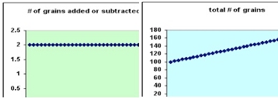 It is easy to see that Gn = 2n x G0. On the 64th day the number of accumulated grains would be 18,446,744,073,709,551,615 [1] From Wikipedia. The story continues…However, when the treasurer took more than a week to calculate the amount of wheat, the ruler asked him for a reason for his tardiness. The treasurer then gave him the result of the calculation, and explained that it would be impossible to give the inventor the reward. The ruler then, to get back at the inventor who tried to outsmart him, told the inventor that in order for him to receive his reward, he was to count every single grain that was given to him, in order to make sure that the ruler was not stealing from him. - Wikipedia