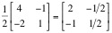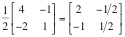 The inverse of this matrix is Multiplying our matrix equation on the left by the inverse of the coefficient matrix[2] , we obtain The reader is urged to pay particular attention to the units of each of the matrix elements. The two elements of the “unknown” column matrix, H and R, have different units. Clearly, this column matrix represents a vector in the {hen, rabbit} plane. On the other hand, the elements of the “data” column matrix, 50 animals and 140 feet, are entirely different.[3] The equation can be thought of as a transformation of a vector in the {hen, rabbit} plane into a given and known vector in the {animal, feet} plane.