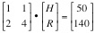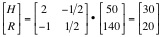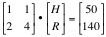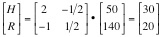 If we formulate our problem as a linear matrix problem – where the unknowns are the elements of the column vector H and R .